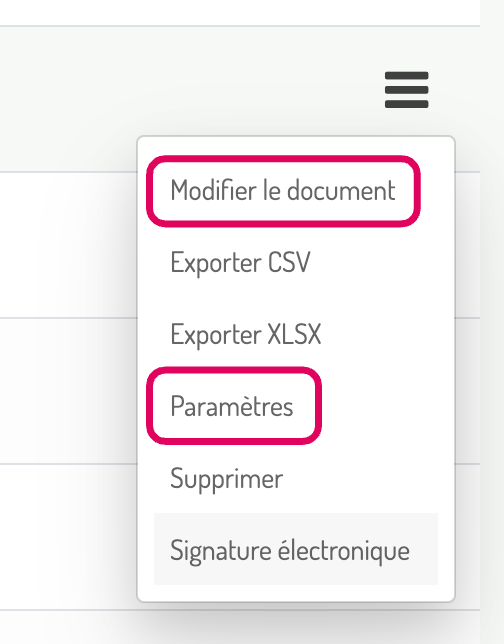 Je clique sur le menu burger du modèle de document, puis sur modifier le document. Mon modèle de document s'ouvre dans un nouvel onglet