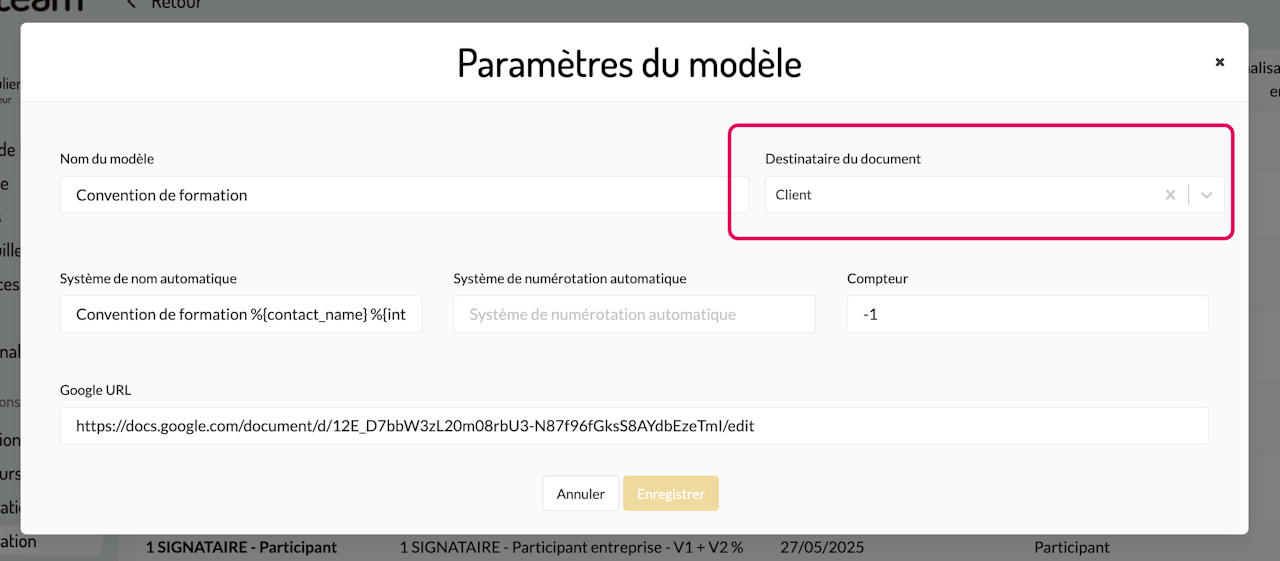 Dans la Configuration de mon logiciel, onglet "Modèles de documents"