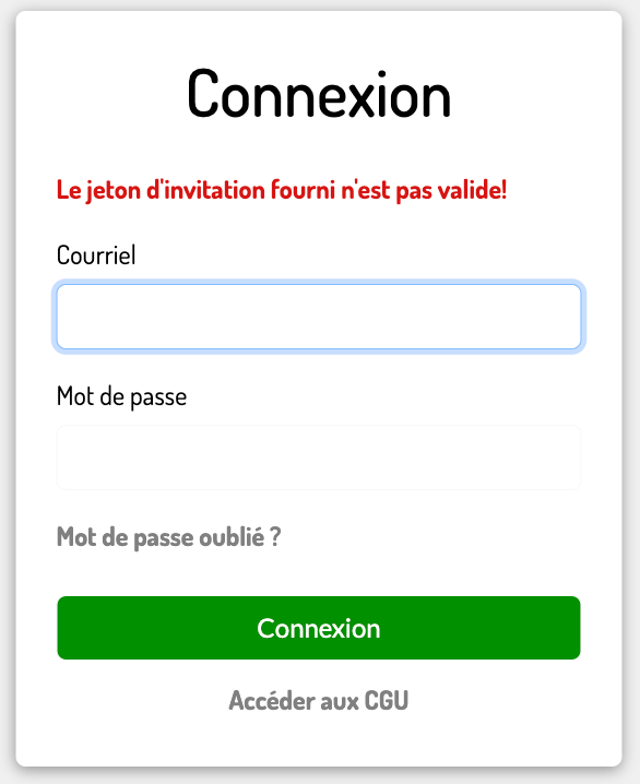 Le lien présent dans l'email reçu ne fonctionne pas et affiche le mention : "Jeton invalide" ou "Cette invitation a expiré"
