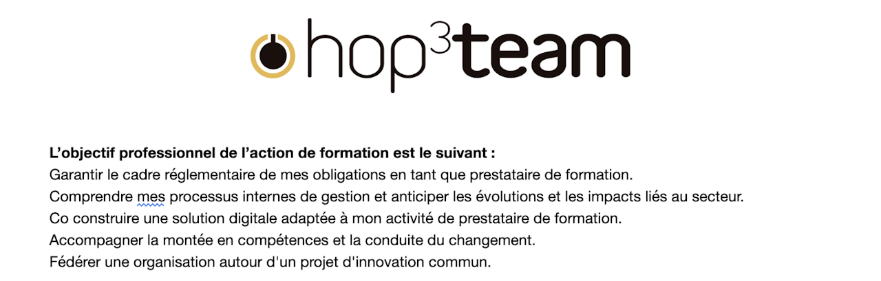 5️⃣ Le prestataire définit les objectifs opérationnels et évaluables de la prestation | ✅ Validé dans mon logiciel Hop3team Démontrer que les objectifs sont opérationnels et évaluables | Fonctionnalités concernées :
